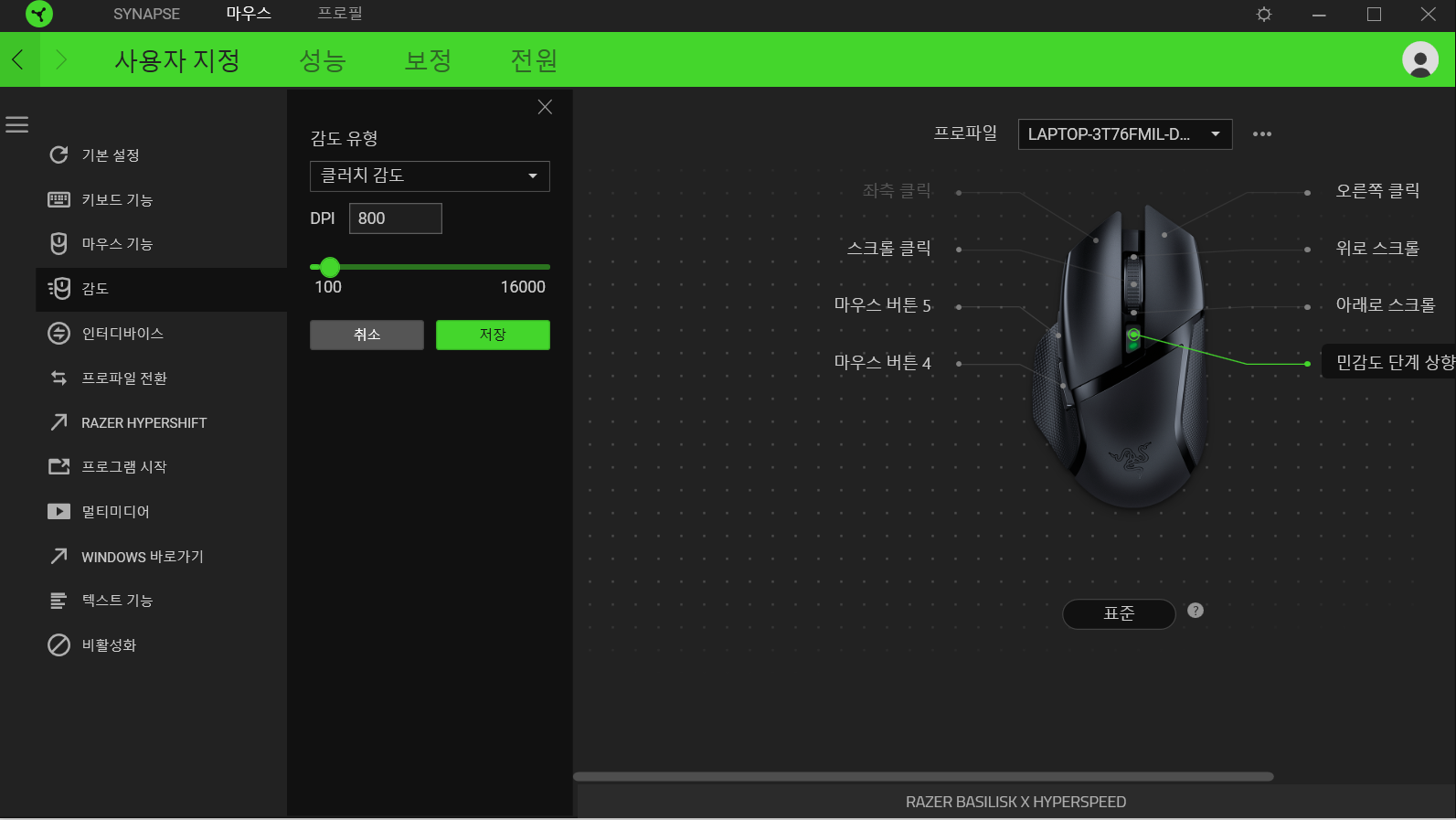 그리고 컴퓨터에 연결해서 시냅스 프로그램으로 dpi 조정 가능하고 뭐 이것저것 조정 해 볼 수 있는 듯.