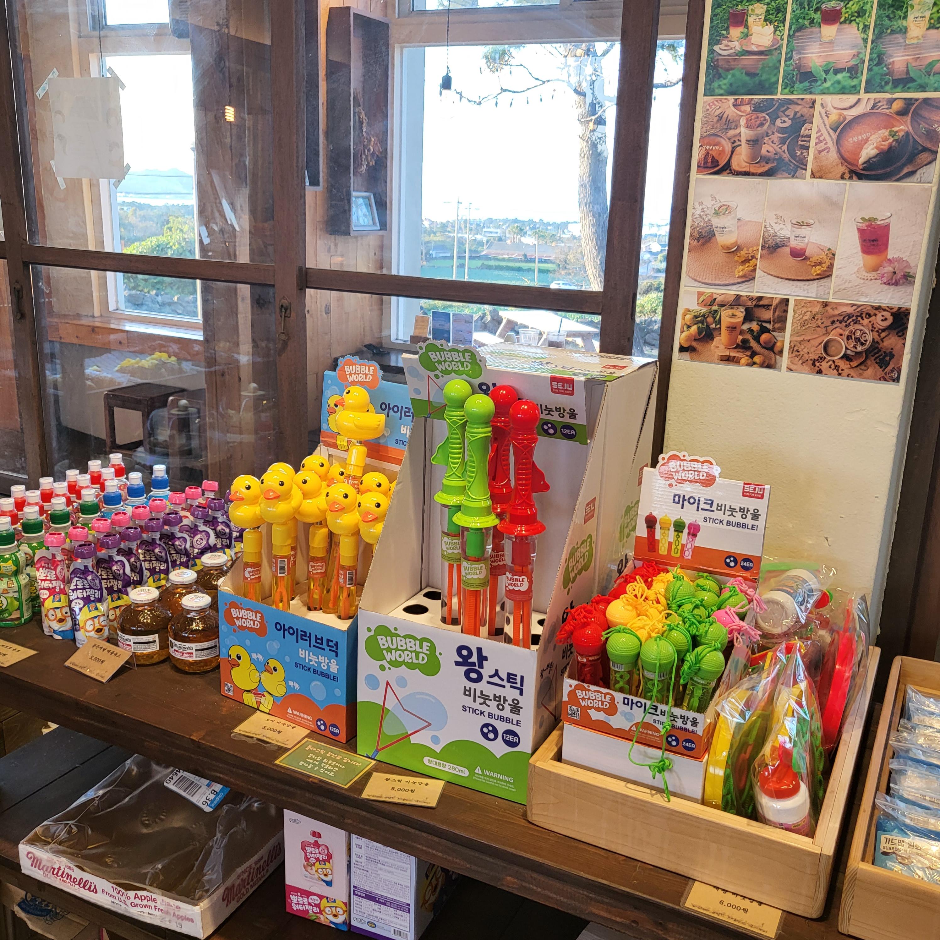 카페 공간에서 따로 주전부리 간식코너가 따로 있었고, 비눗방울 장난감 같은 것도 있었다.