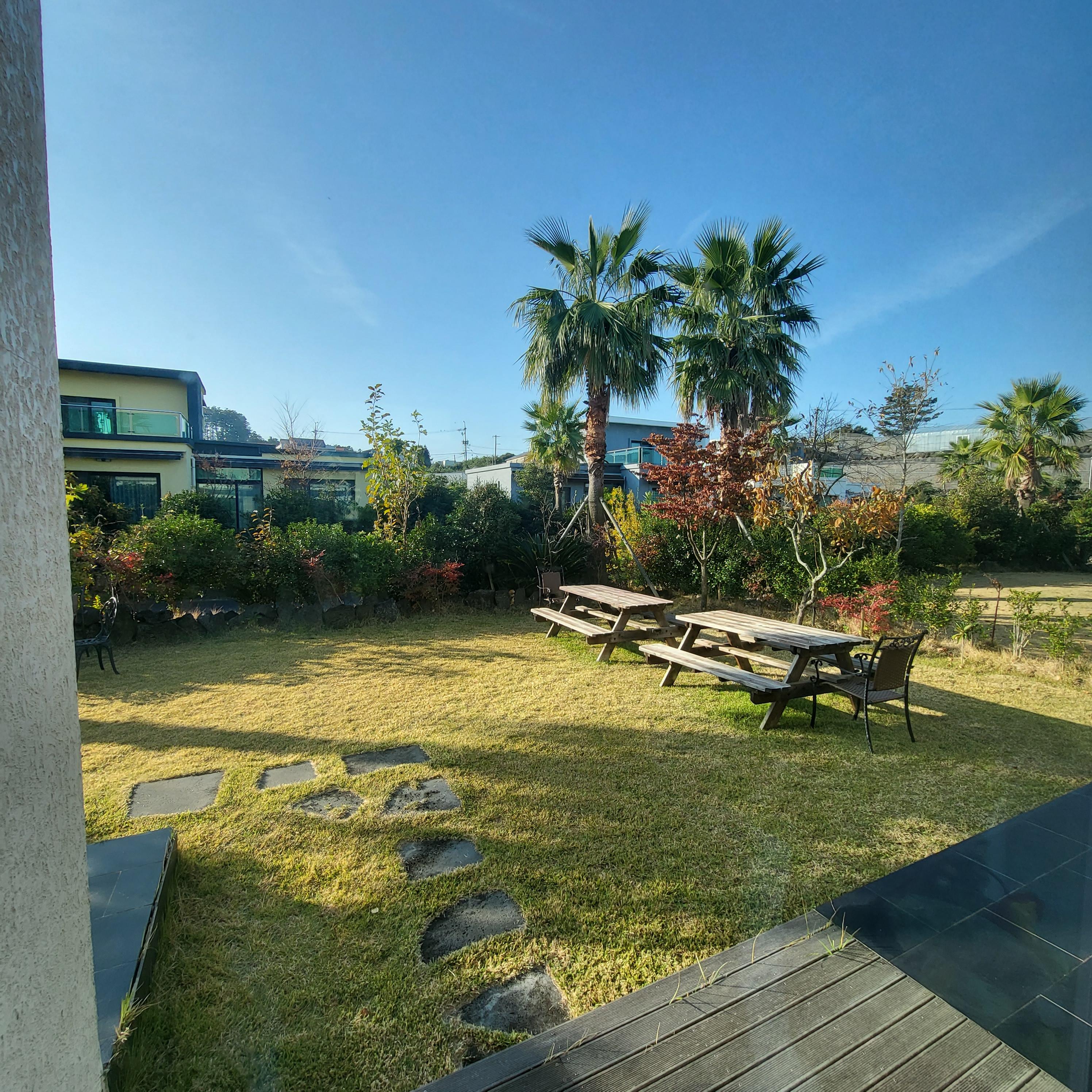마당에 바비큐 할 수 있는 공간이 있었는데, 그걸 써먹기엔 좀 기구들이 시원찮았다. 그거 빼고는 만족