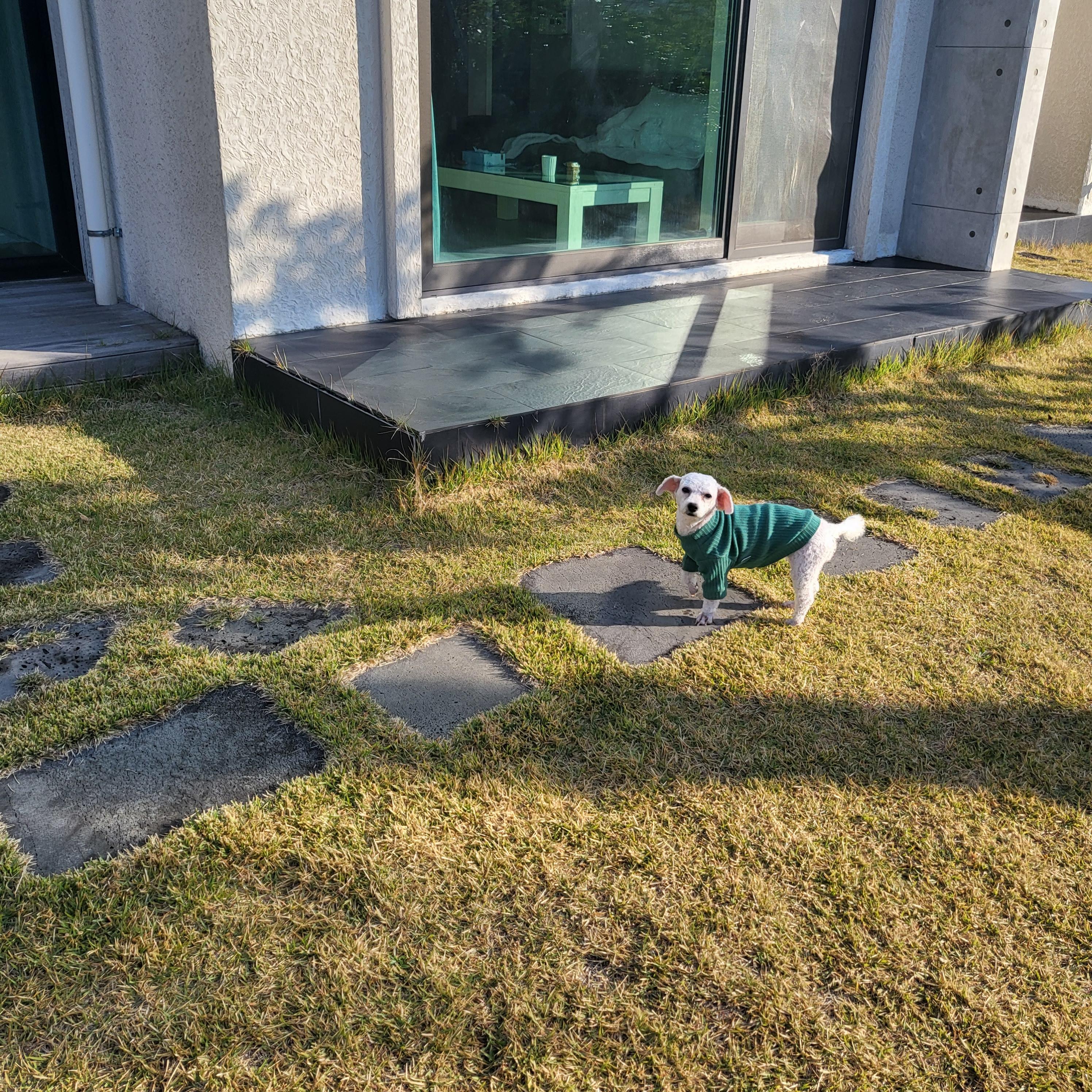마당 자체에 울타리가 칼같이 있는 것은 아니라서, 개가 이탈할 가능성이 있으니 눈여겨 봐야 함