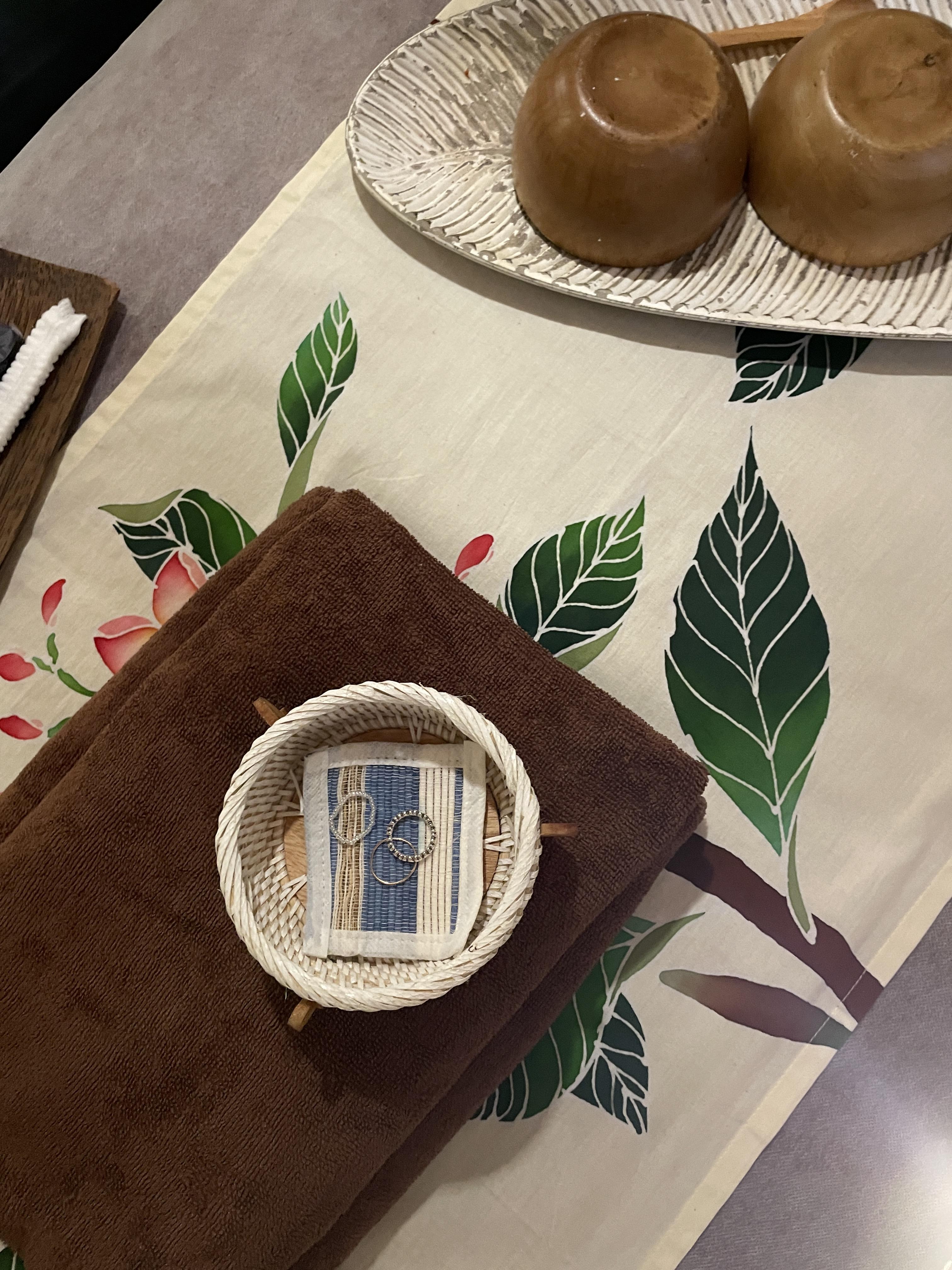 저 그릇들은 아마 오일같이 마사지에 쓰이는 것 같다.