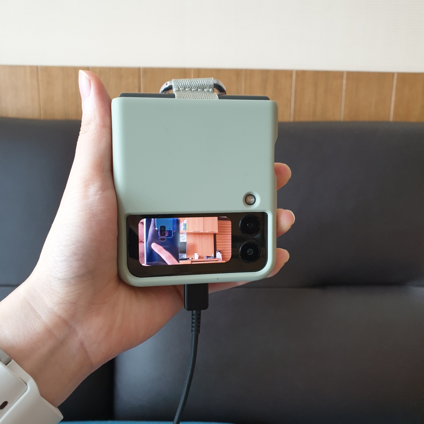 이번엔 휴대폰을 닫고 커버 카메라로 찍은 사진과 전면 카메라로 찍은 사진을 비교해보았다.