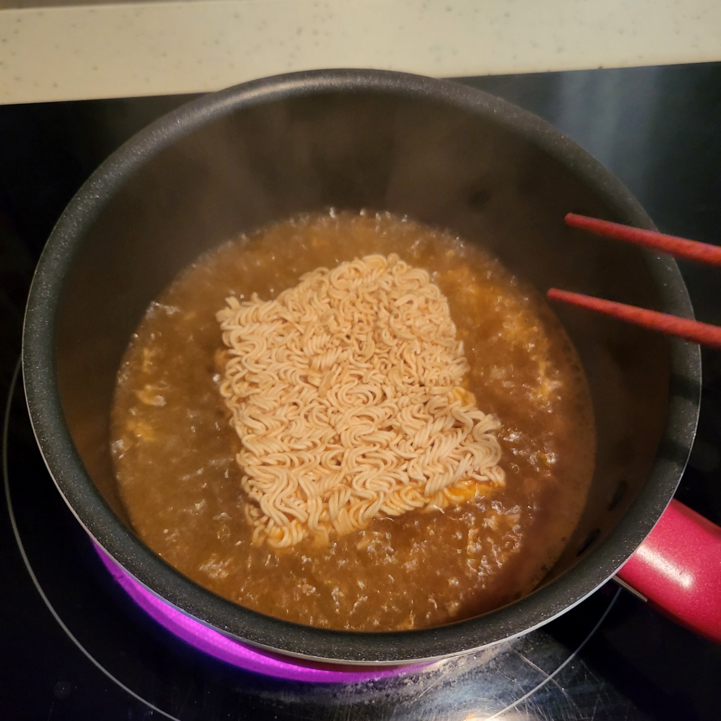 시키는 대로 해볼까 했지만, 그릇을 덮어둘 마땅한 것이 생각이 나지 않아 그냥 한국 라면처럼 끓여먹었다.