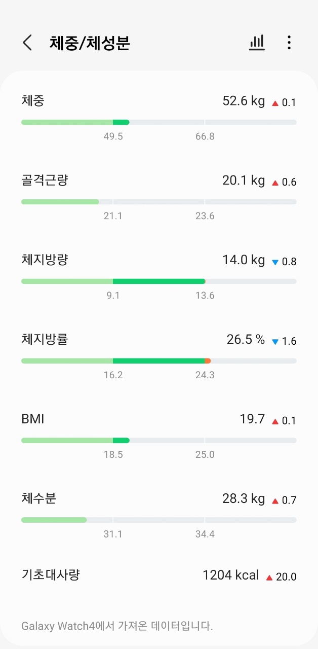이 워치로만 꾸준히 체크하면 인바디에서 나타난 변화만큼 비슷하게 변하려나...