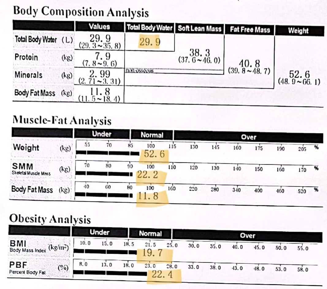 - BMI : 19.7kg/㎡ / 19.7kg/㎡