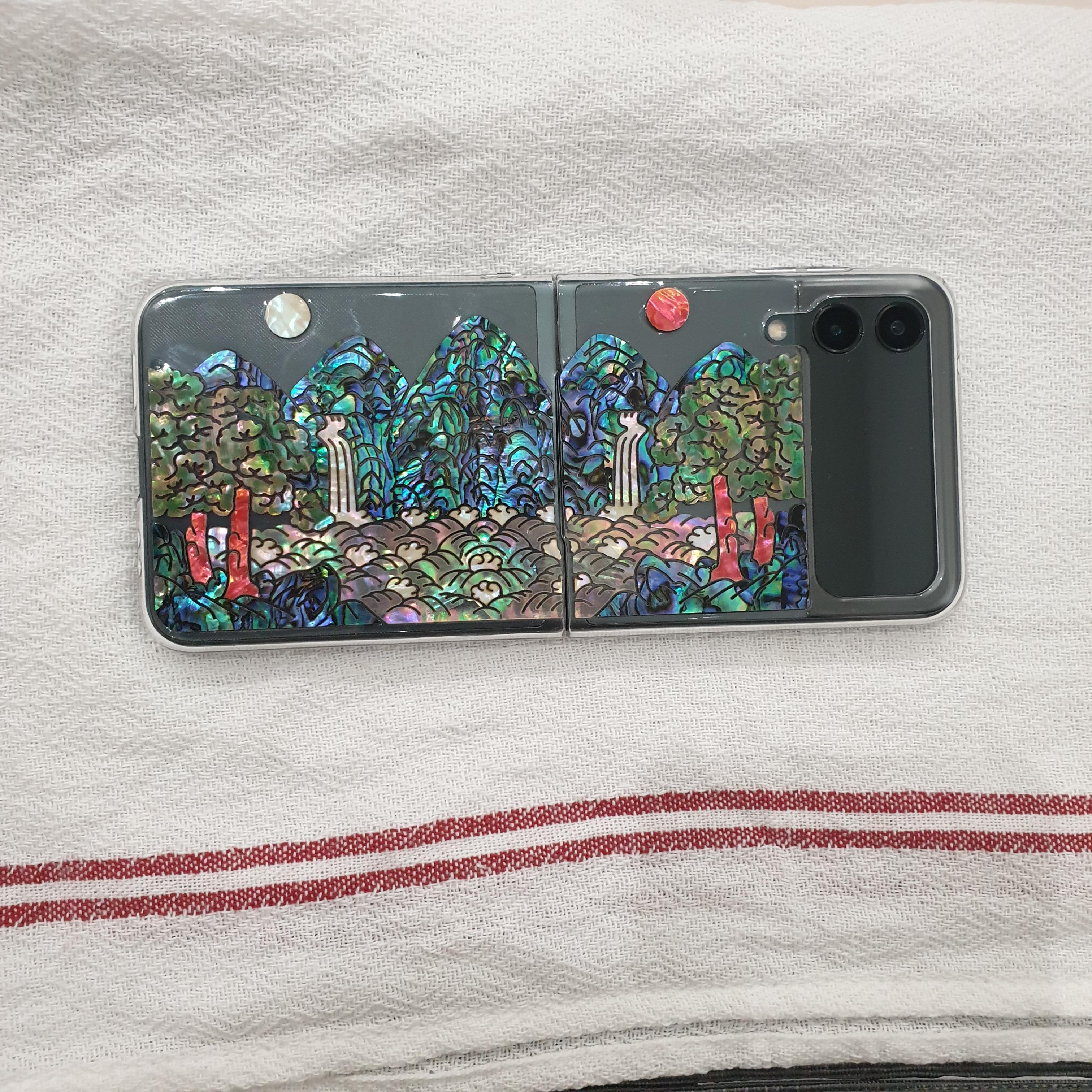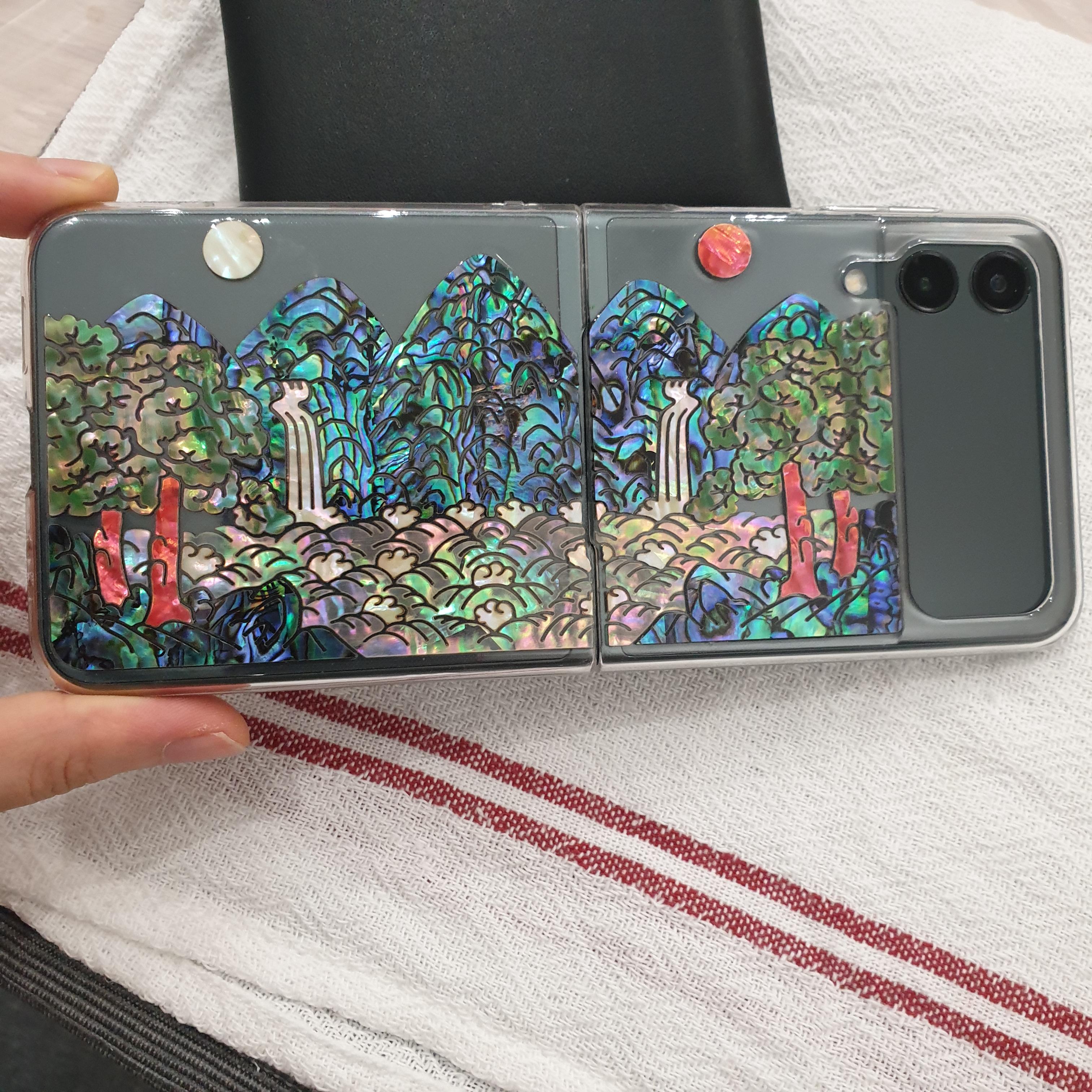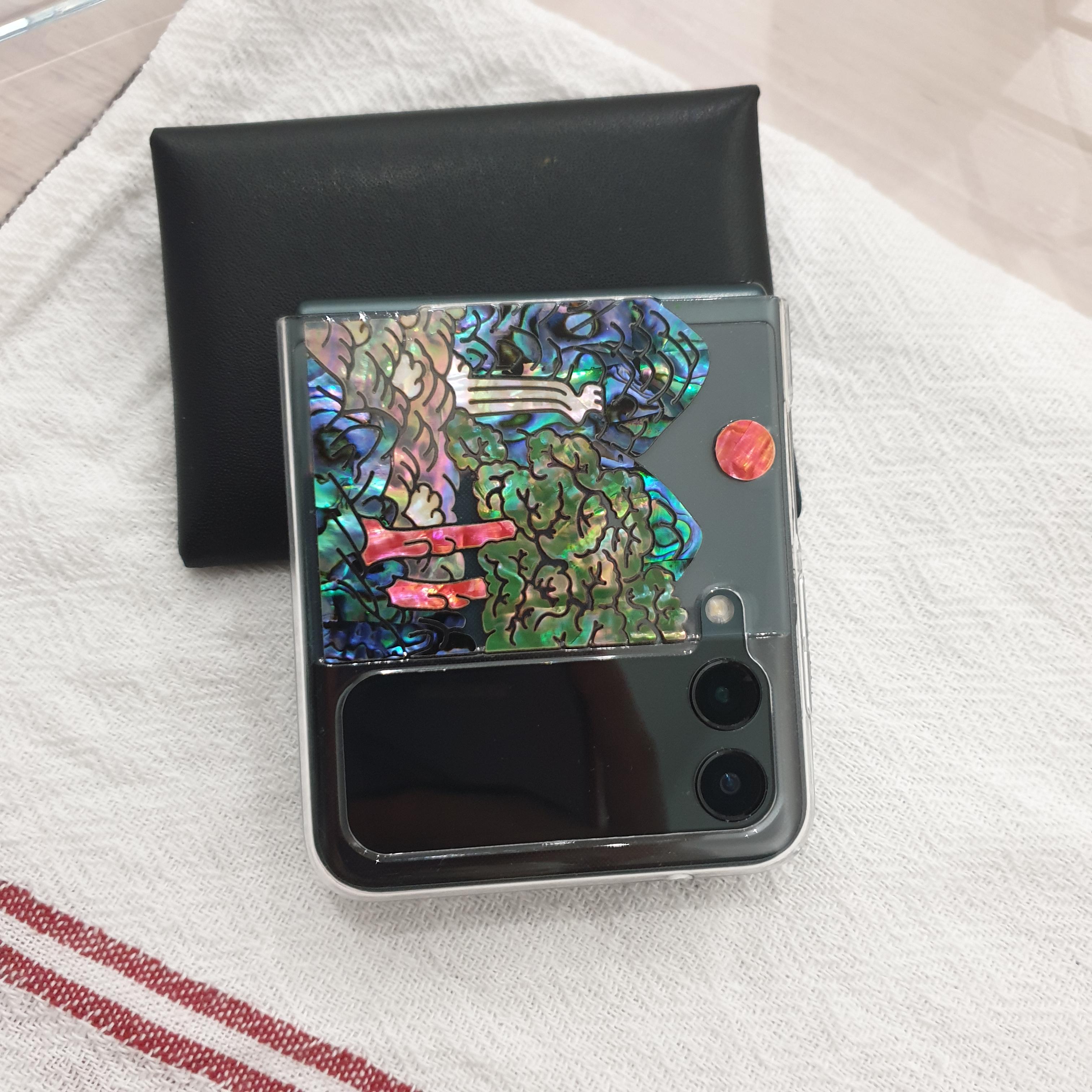 자개 스티커를 아예 케이스에 붙이니까 별도의 케이스를 하나 더 샀더랬음 ^^