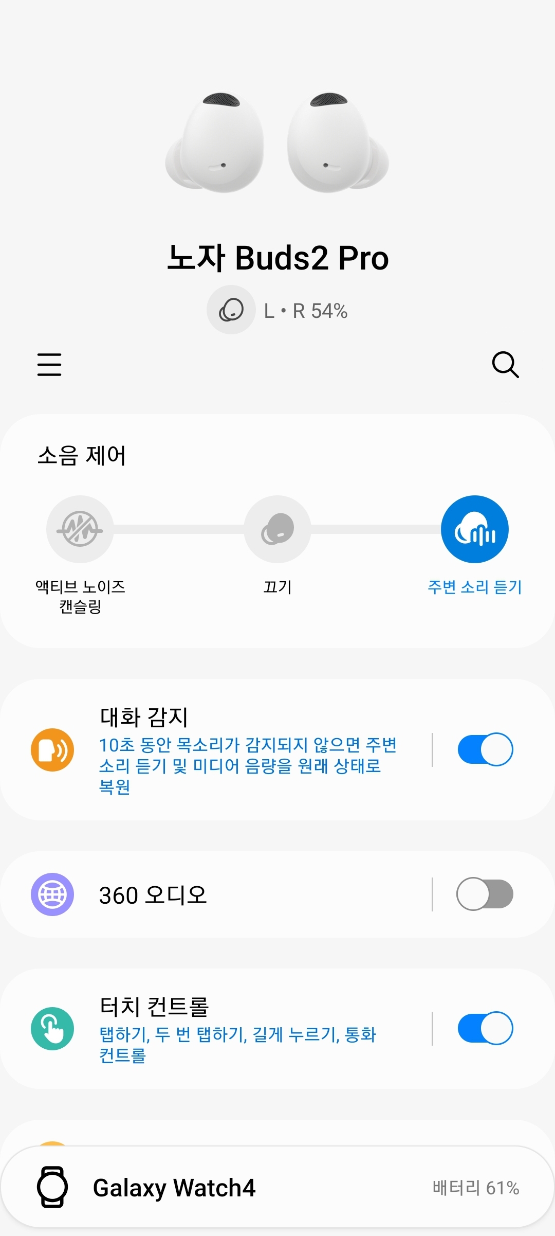 웨어러블 앱에서 워치랑 버즈랑 왔다갔다하면서 설정 가능 ㅜㅜ