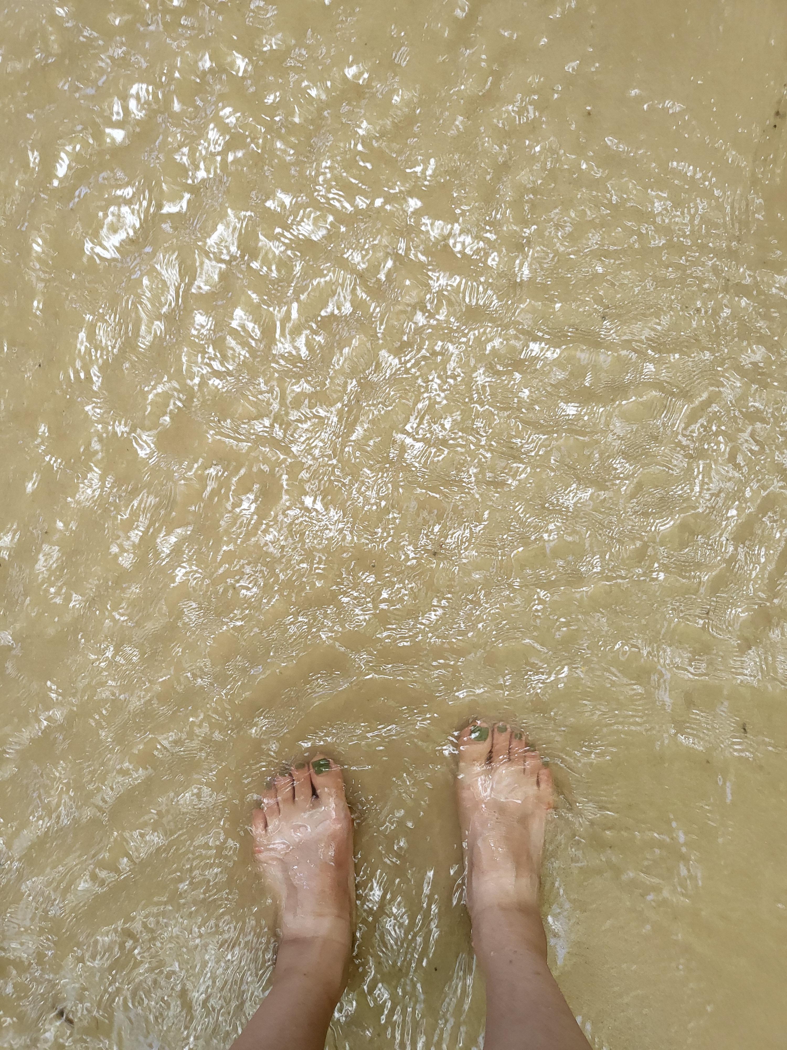 고운 모래가 있기는 하지만, 간혹 거친 돌과 바위가 있는 구역이 있기도 하고 모래를 채운 포대로 길을 걸어야 하는 경우가 있다.