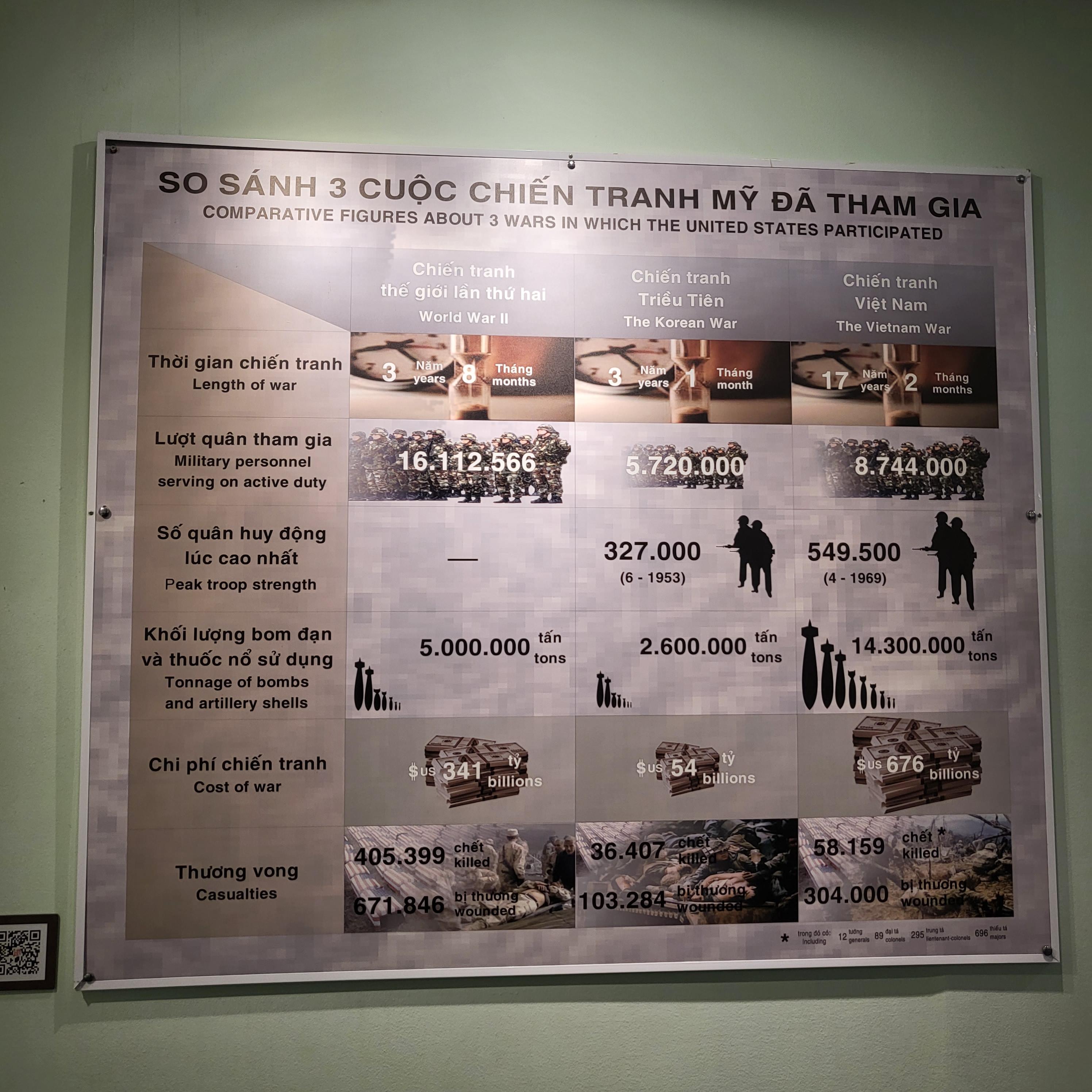 보던 와중에 2차 세계대전/한국전쟁/베트남전쟁에 대한 비교표가 있었다.