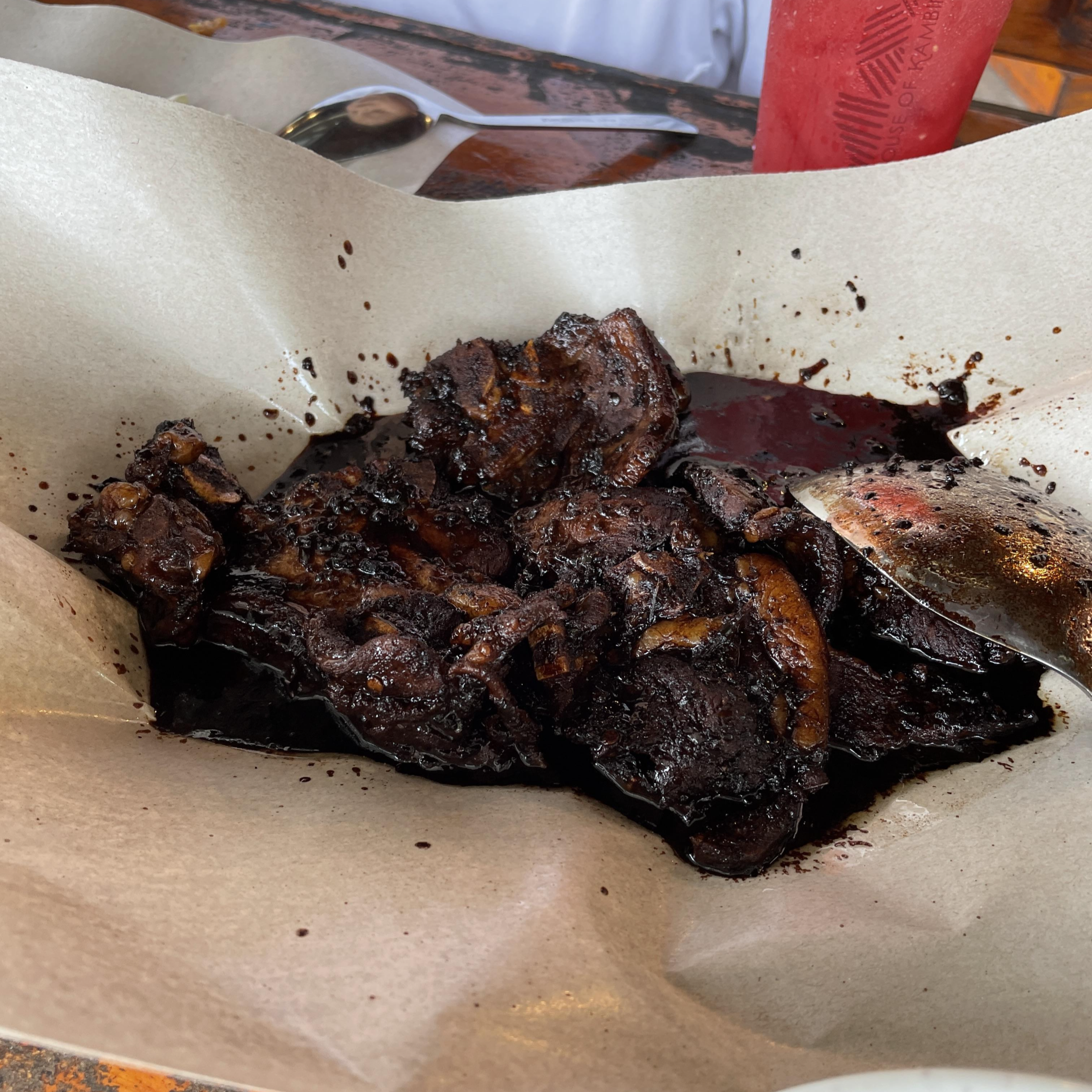 저 검은색의 음식이 염소고기 메뉴다. 그리고 닭튀김도 따로 시켰던 것 같다.
