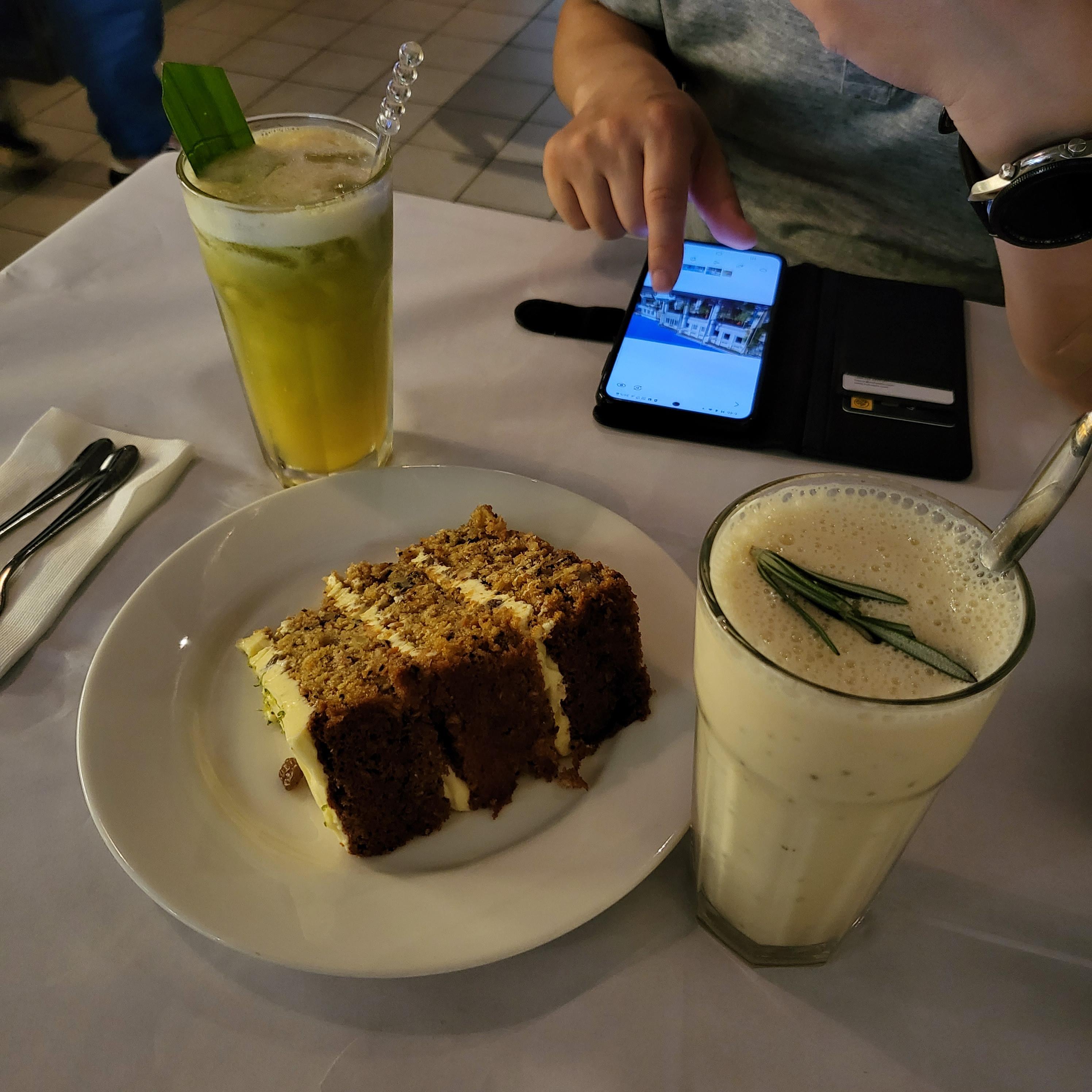 나는 당근 케이크 1조각과 패션후르츠 쉐이크? 스무디? 를 시켰다.