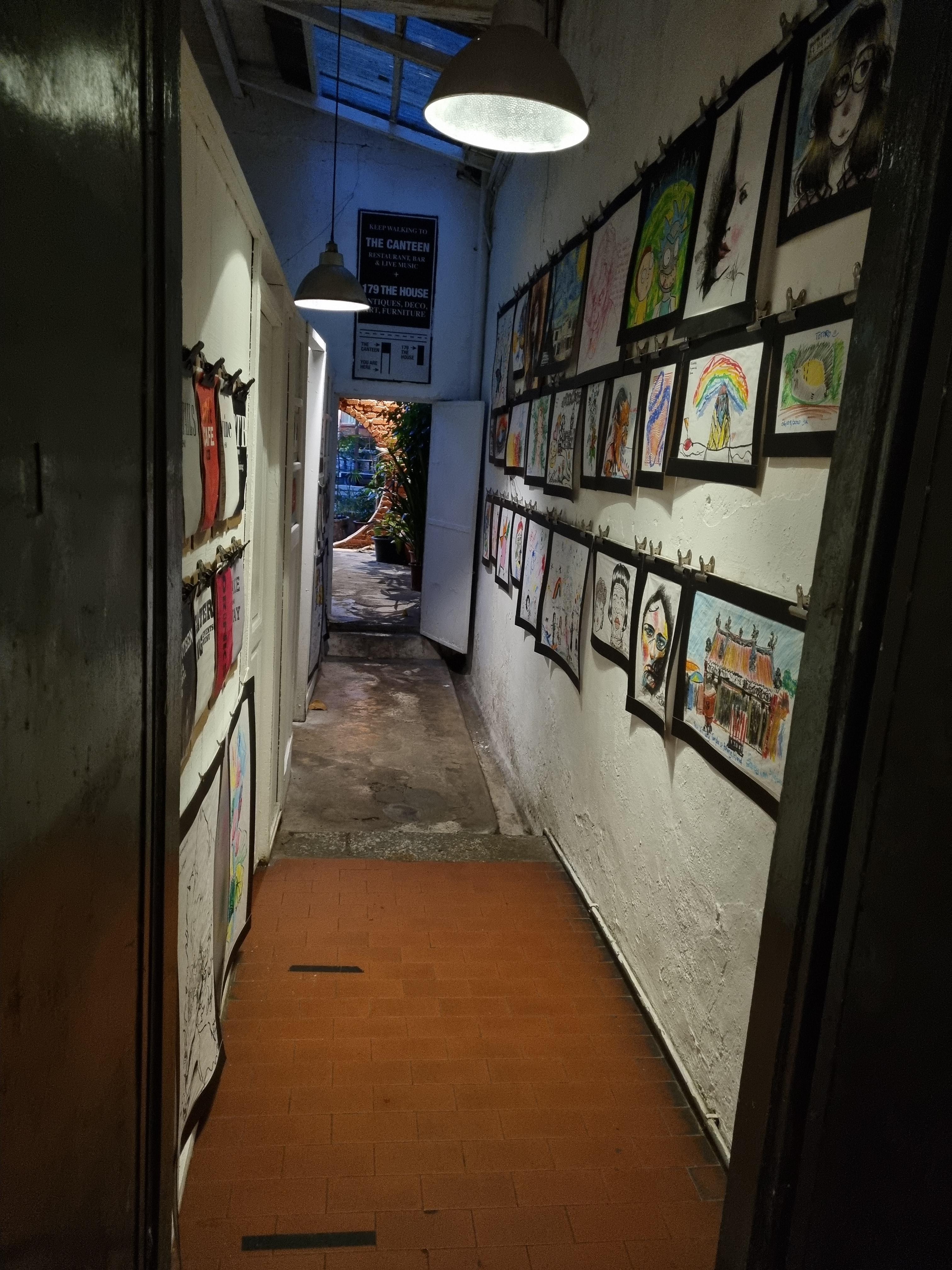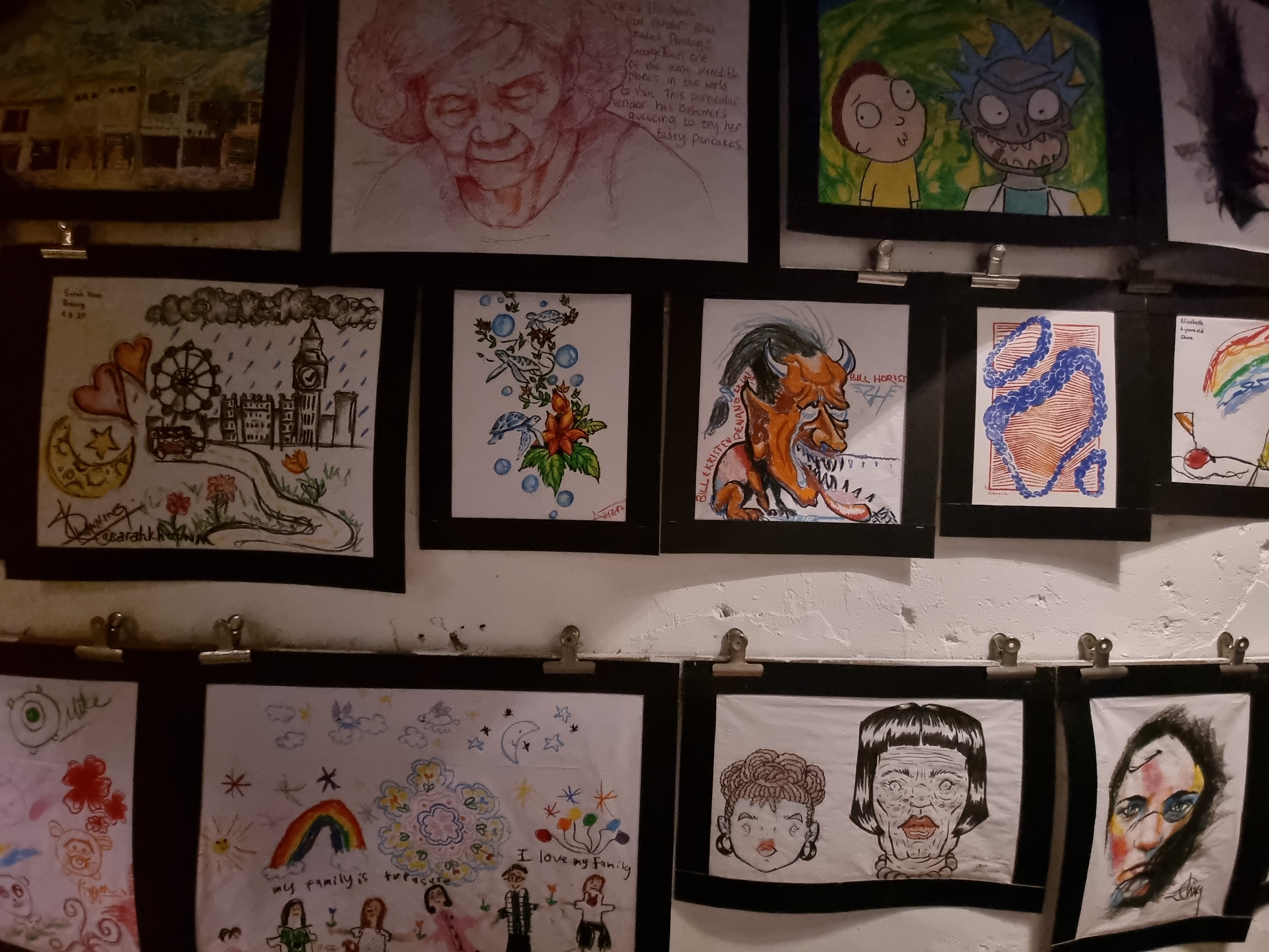 매장 안쪽으로 가다보면 화장실이 나오는데 가는 길목에 이렇게 그간 손님들이 그린 것 같은 그림이 전시되어있다.