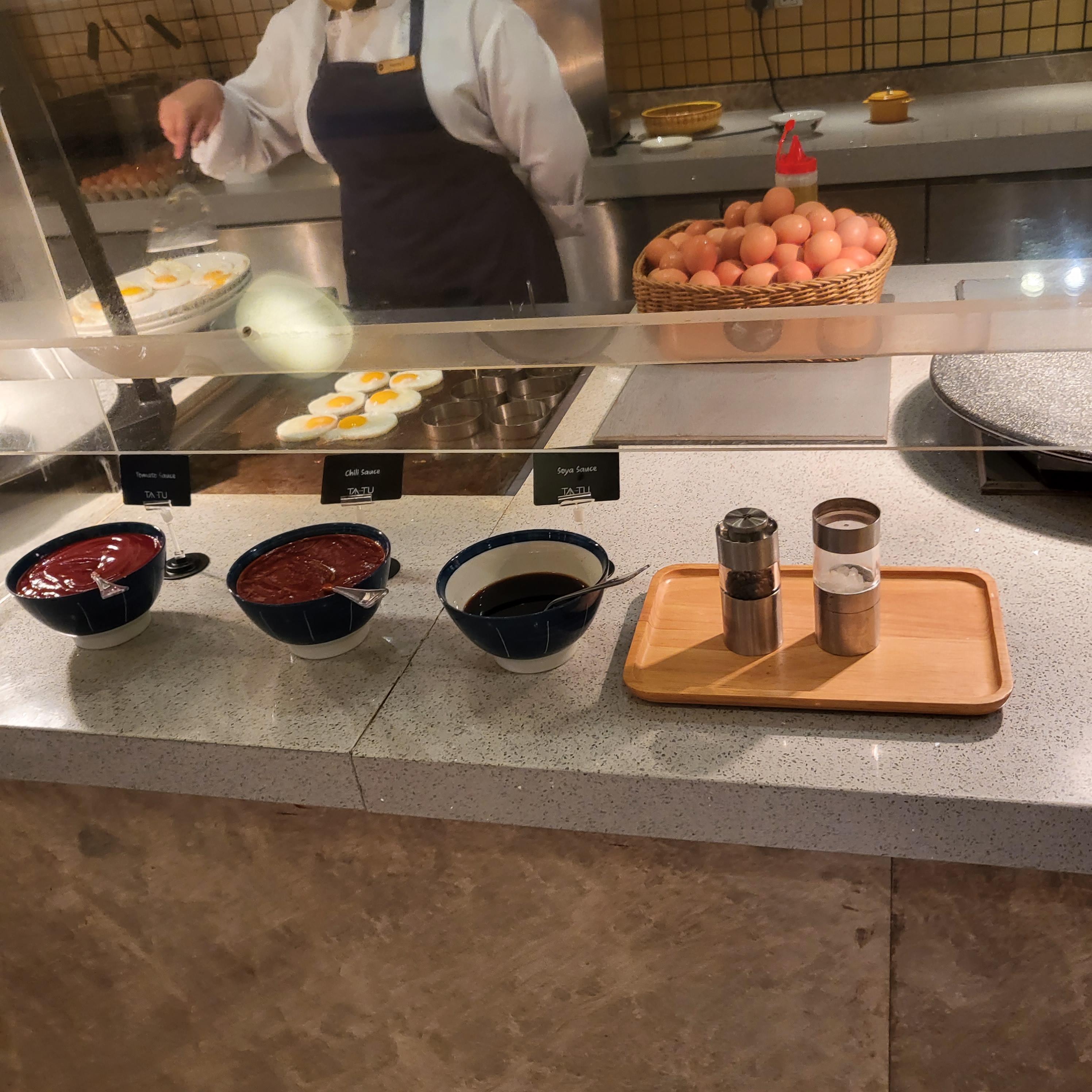 호라이즌 클럽룸 숙박객들은 클럽 라운지에서 보다 조용한 분위기에서 조식을 먹을 수 있었지만, 보다 많은 다양성을 위해 우리는 라운지를 가지 않고 조식 부페를 3일 내내 갔다.