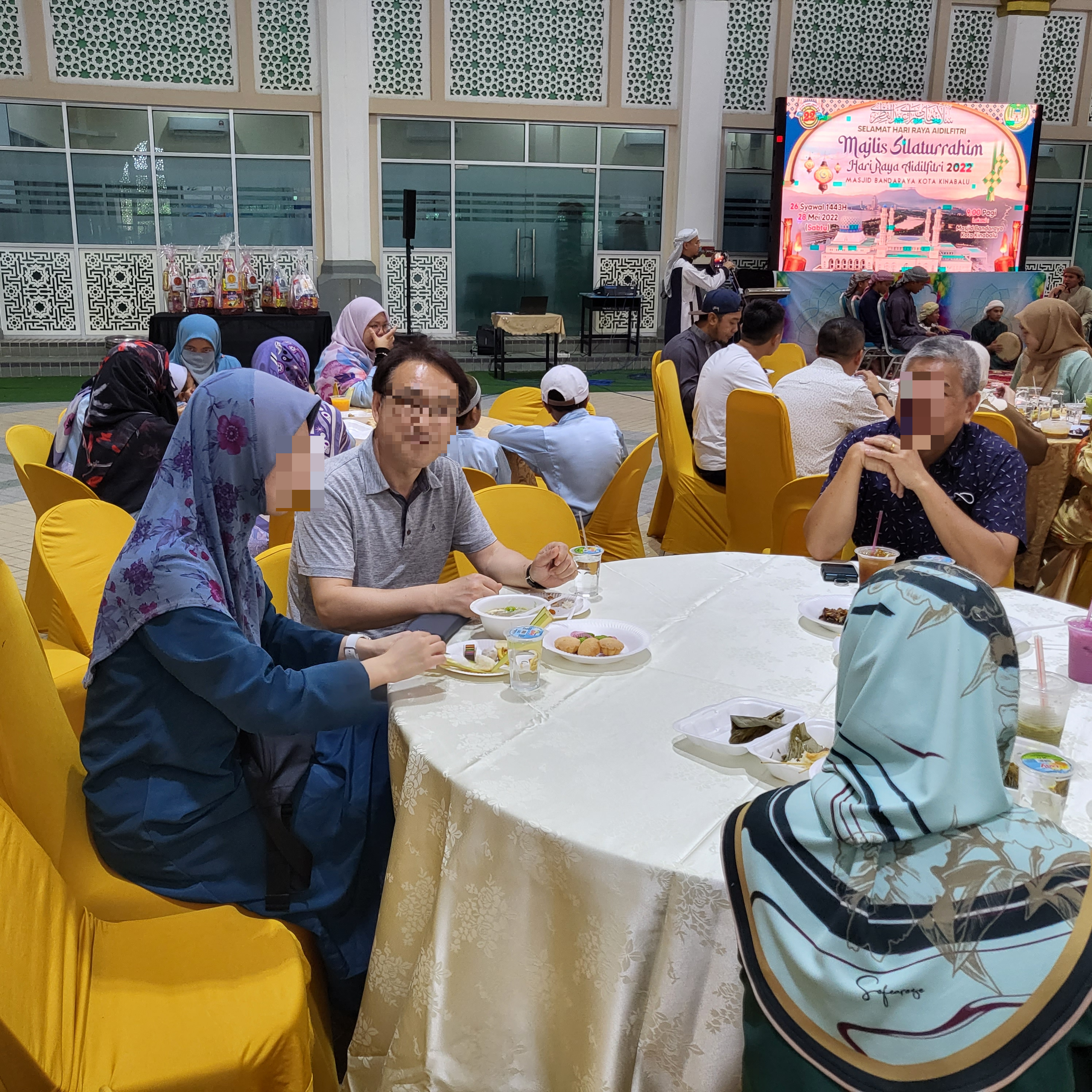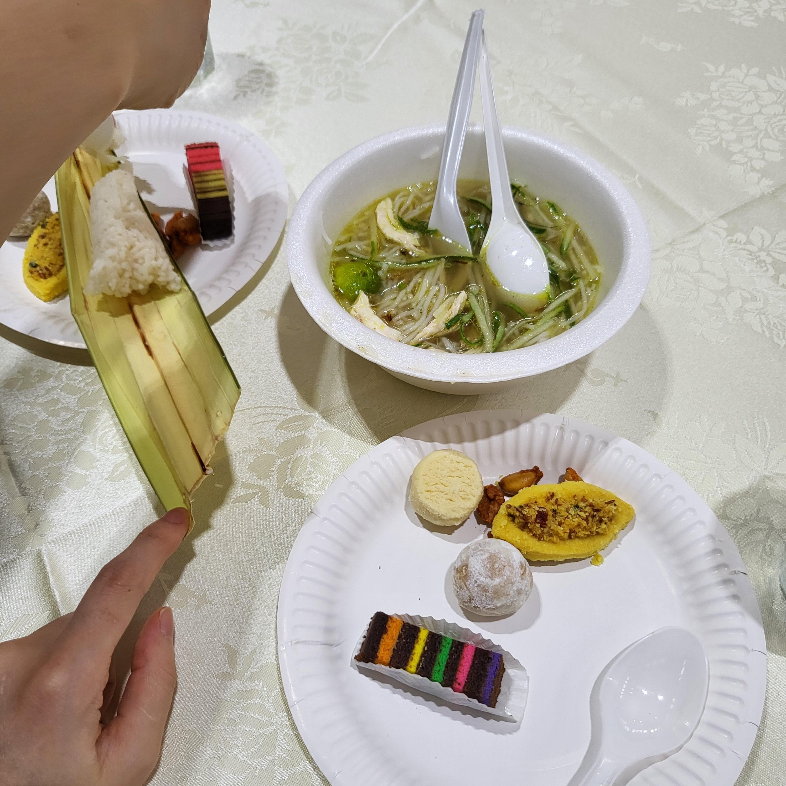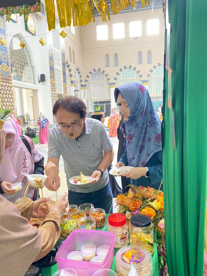 갑자기 하리라야를 기념하니 이것저것 먹을 것도 많다고 마침 잘됐다면서 우리를 이끌어서 부스에 계신 분들과 인사를 시켜주셨다. 그리고 접시를 주시더니 이것저것 먹을 걸 챙겨주셨다.