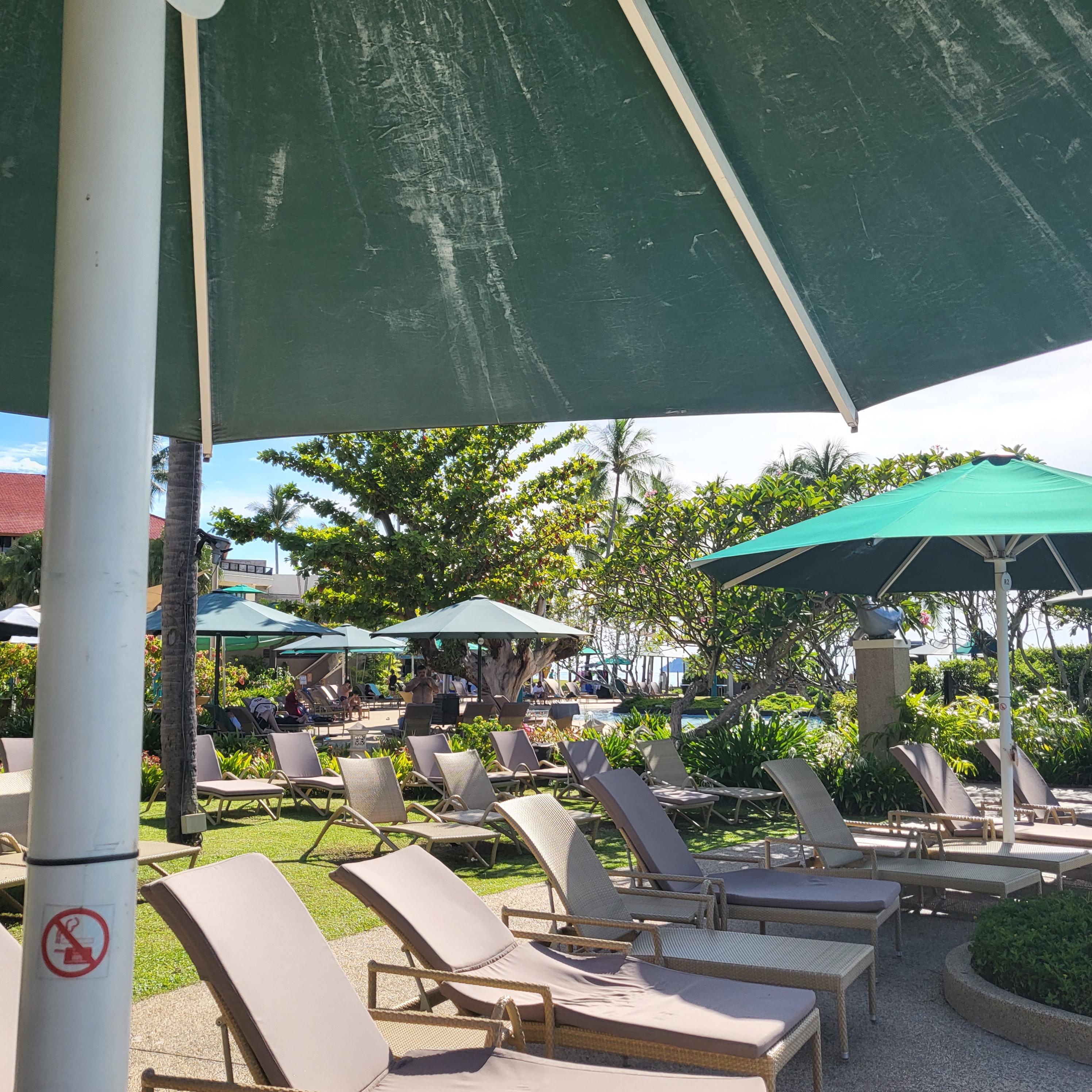 수영장에 이렇게 선베드들도 있는데, 우리는 놀다가 코코넛이나 먹자 싶어서