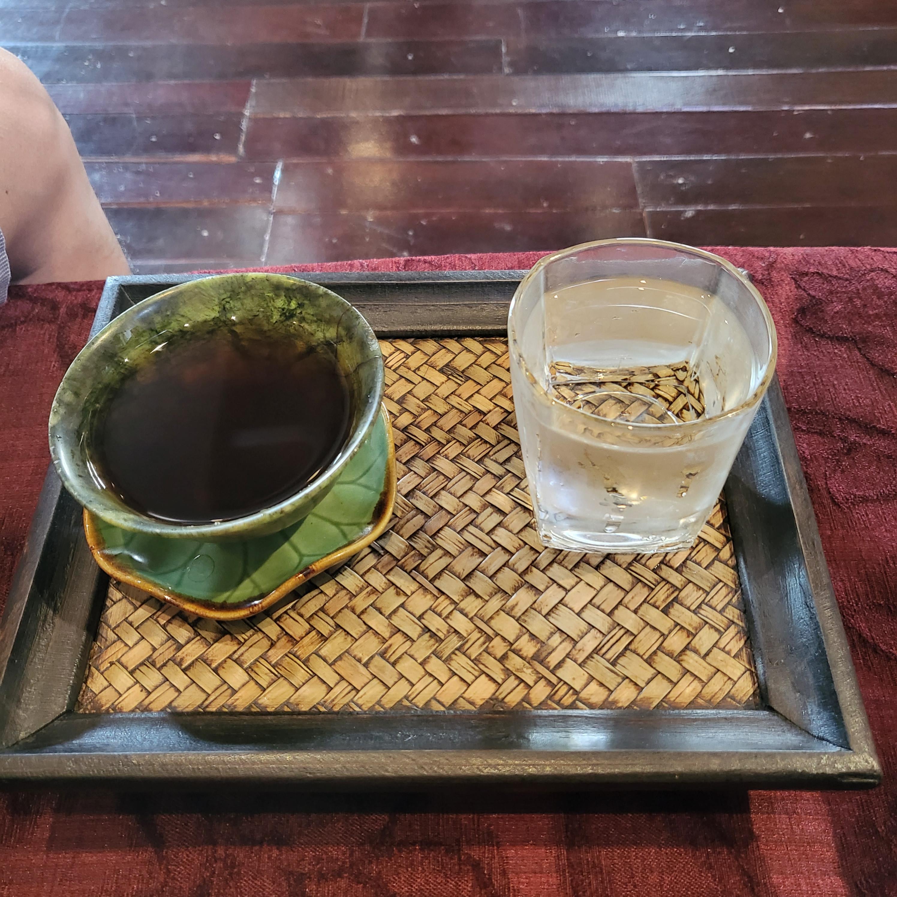 아부지는 따뜻한 차, 나는 좀 더웠어서 시원한 물로 요청했다.