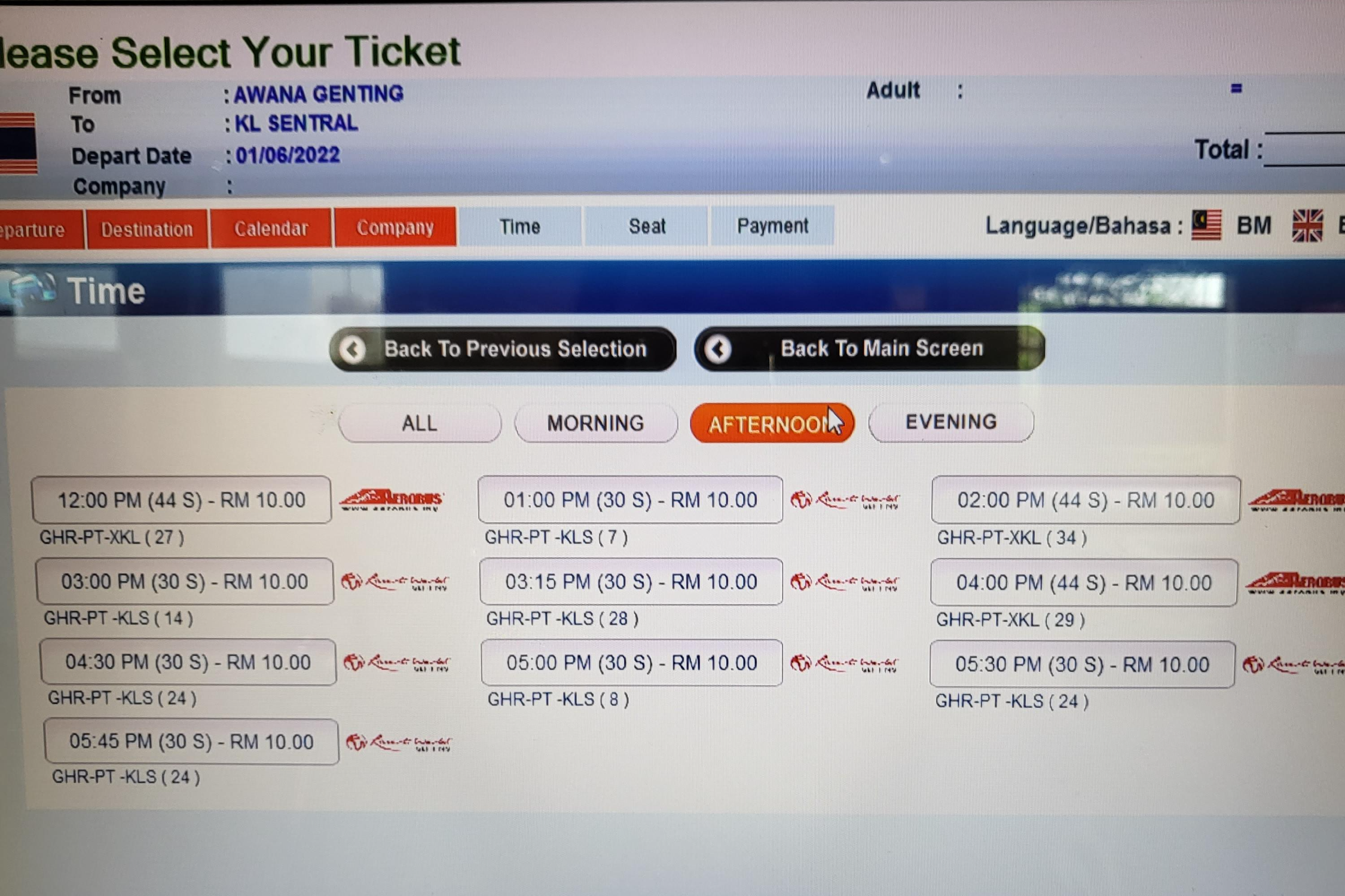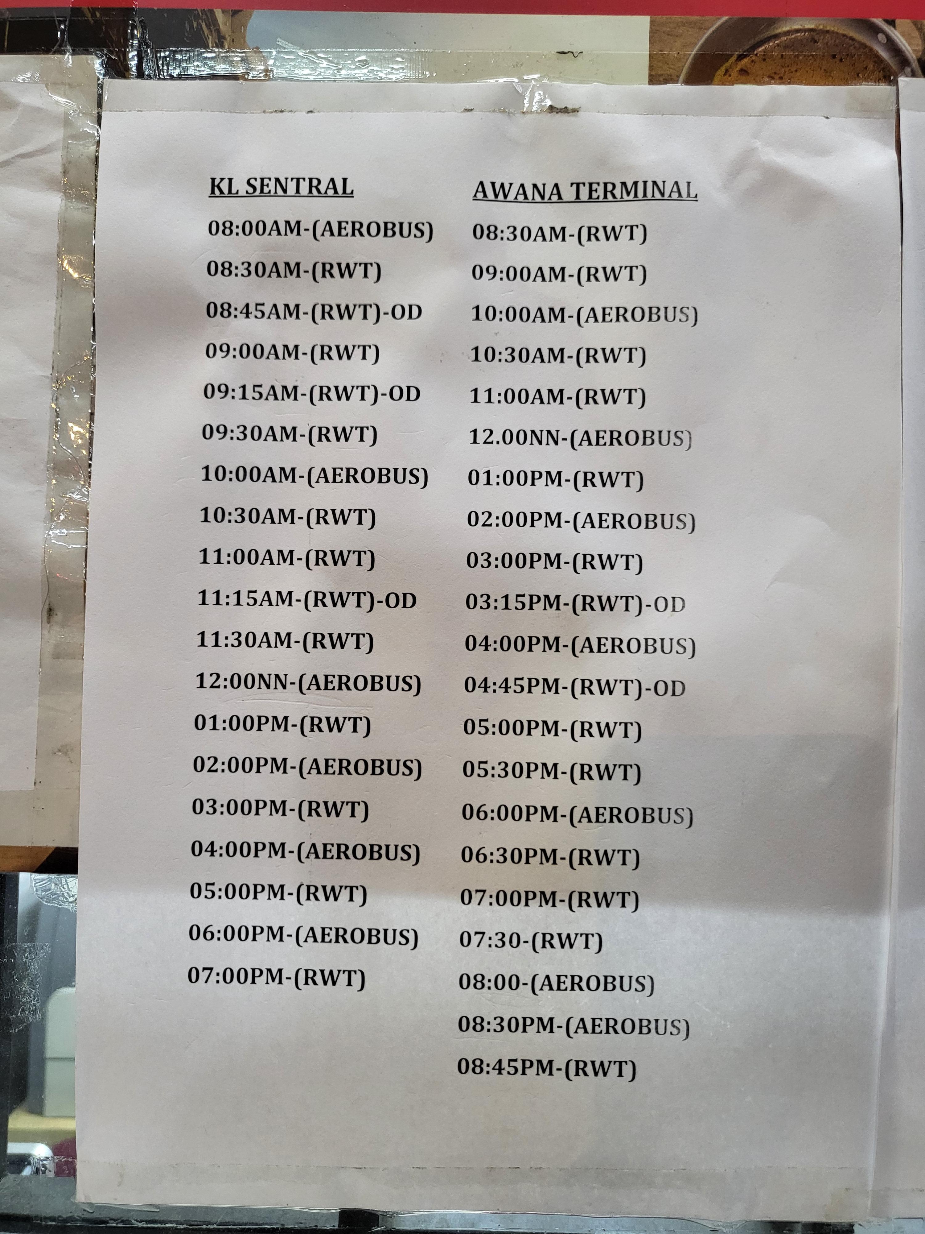 - 버스로 이동 : KL Sentral에서 Awana Terminal까지 약 60분 정도 소요