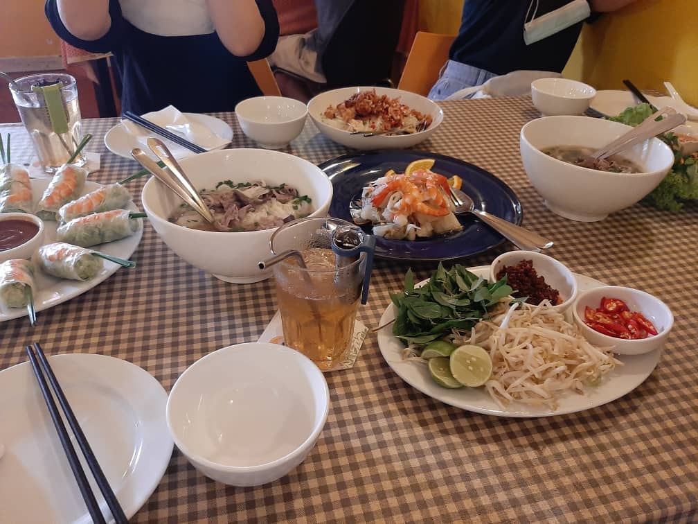 이 날 분짜, 포멜로 샐러드, 쌀국수 2그릇, 스프링 롤 2가지 시켰었다.