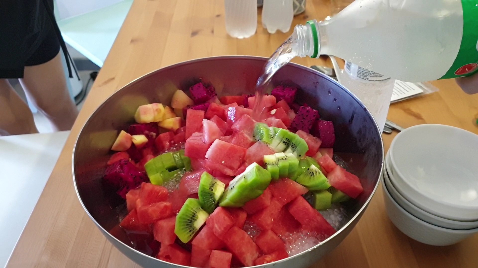 분명 키위를 썰었는데요. 수박을 넣으니 키위가 보이지 않습니다.